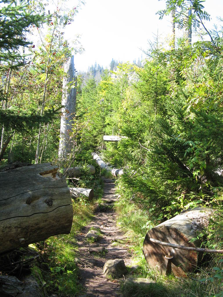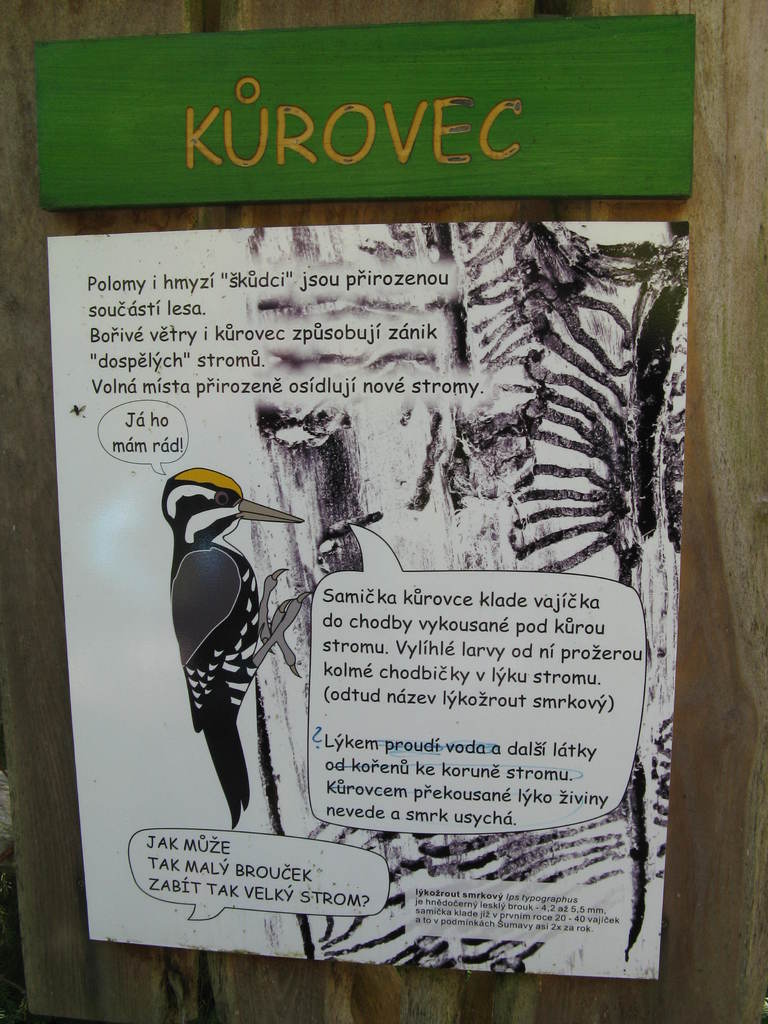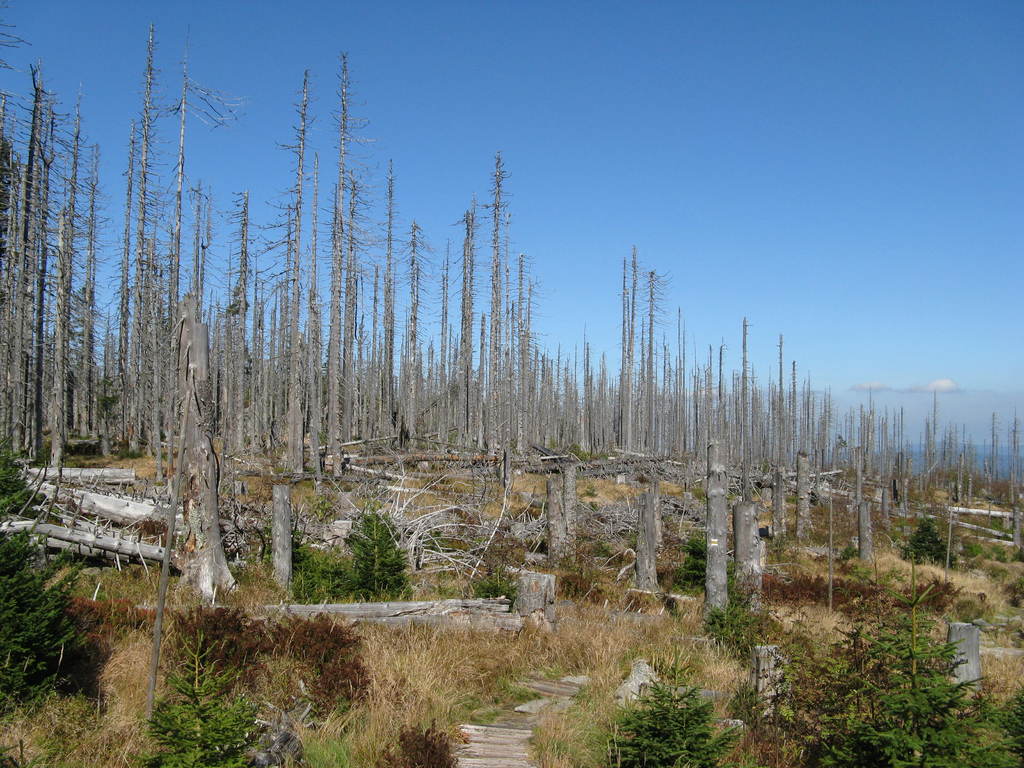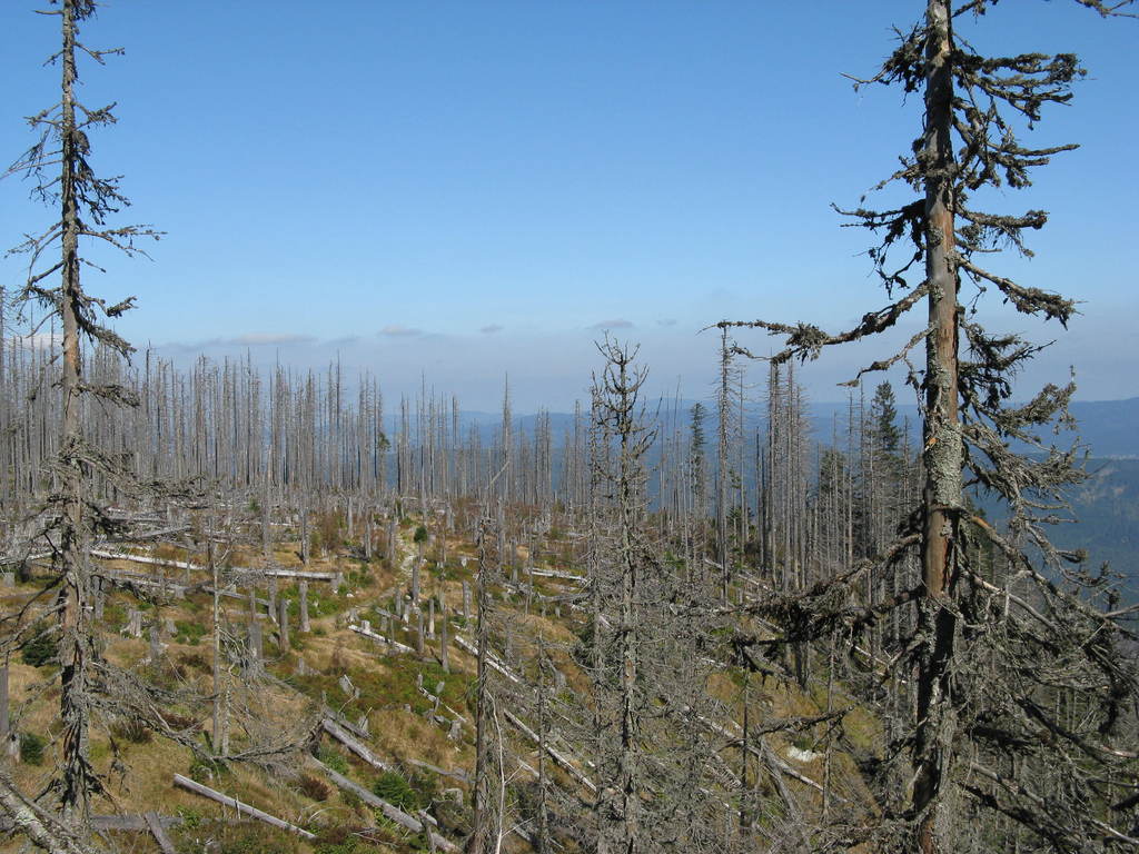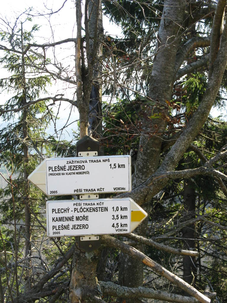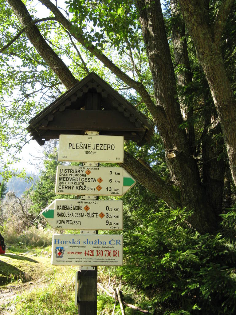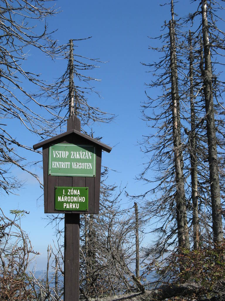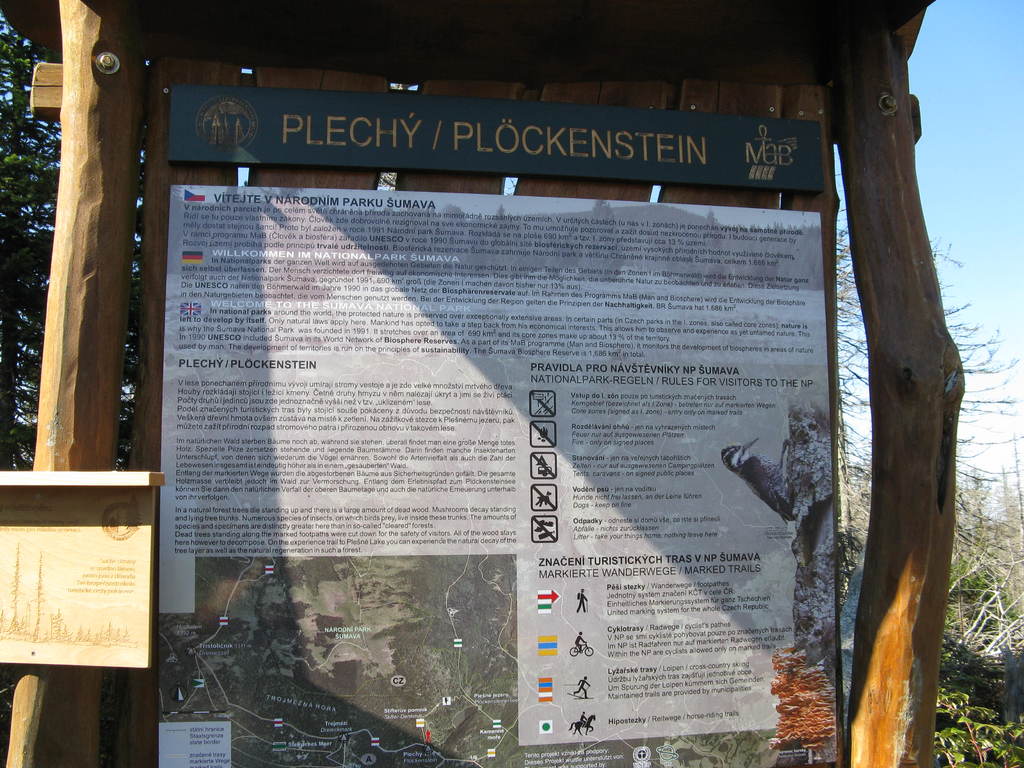 Víkendový pobyt na Šumavě, Černá v Pošumaví u Lipna. Sobotní výstup k Plešnému jezeru a na vrchol Plechý jsme realizovali z Nové Pece. Smrkový les nahoře v okolí Plechého je kompletně zničený kůrovcem. Na rakouské straně už veškerý nemocný a zničený porost vykáceli, takže je tam planina a nové stromy se jim tam nějak nechtějí uchytit. Na naší straně je vše ponecháno v původním stavu svému osudu, dost pěkně je zde vidět, jak kůrovec postupuje stále níž a níž a postupně napadá už i mladé stromky. Vzhledem k tomu, že celá Šumava je téměr jedna velká smrková monokultura, může se takto lýkožrout vesele rozšiřovat dál, protože ho nezastaví žádná přírodní bariéra...
