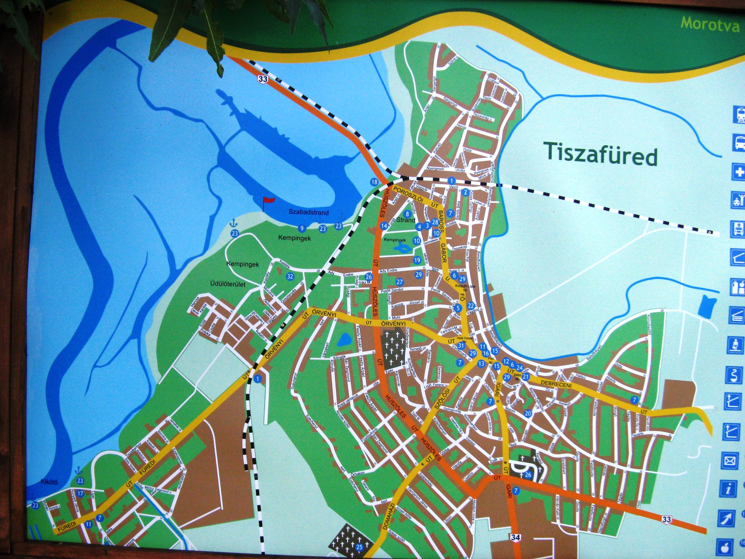 Samotné "město" Tiszafured jinak je nic moc. Spíš nic než moc. Ale v pizzerii se tam dalo dobře a levně najíst, měli jednu benzinku, Lidl, Penny a Tesco, žádné chodníky , rozbitou silnici, na silnici spousta motajících se cyklistů a chodců a aut dohromady, takže si člověk musel dávat bacha, aby ho nepřejelo auto nebo kolo:-), ale je to o zvyku. Je zde spousta kempů a privátního ubytování v pěkných i horších barácích. Upravené ale bylo snad jen okolí toho hotelu a pak překvapivě pro nás veliká část jezera má vyhrazenou pláž mj. s perfektním zázemím pro rybáře a pro děti. Např. x desítek vybudovaných ohnišť s možností zavěsit si kotlík na vaření, u každého ohniště vyvedená voda, fakt vymakané. Navíc dětské hřiště a rozhledna. Vše vybudováno z prostředků EU fondů. Nutno dodat, že celé okolí je také vhodné pro cykloturistiku, celé jezero se taky dá objet pohodlně na kole po cyklostezkách.