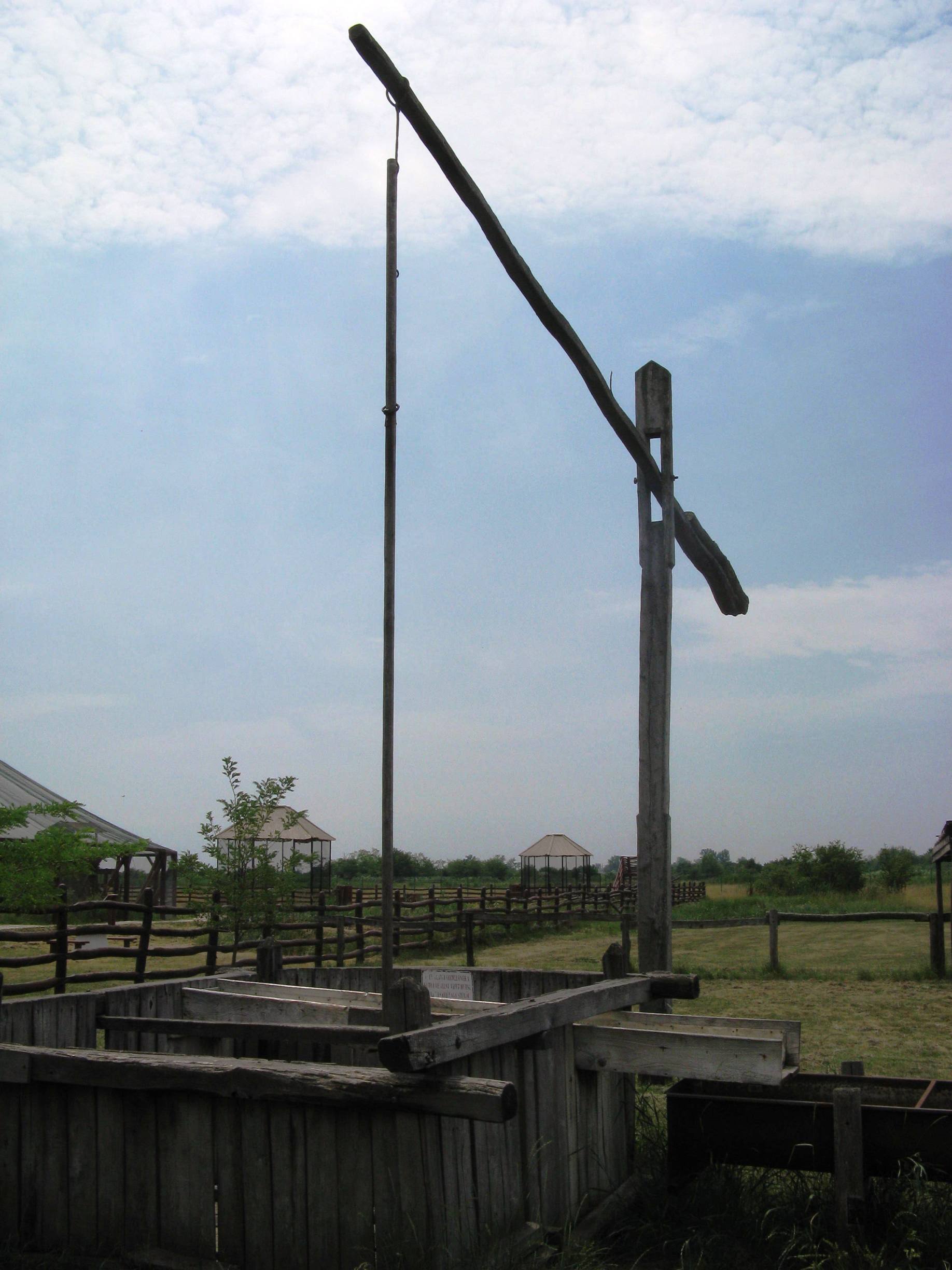 Devíti dírový most v Hortobágy Puszta s vahadlem na vodu